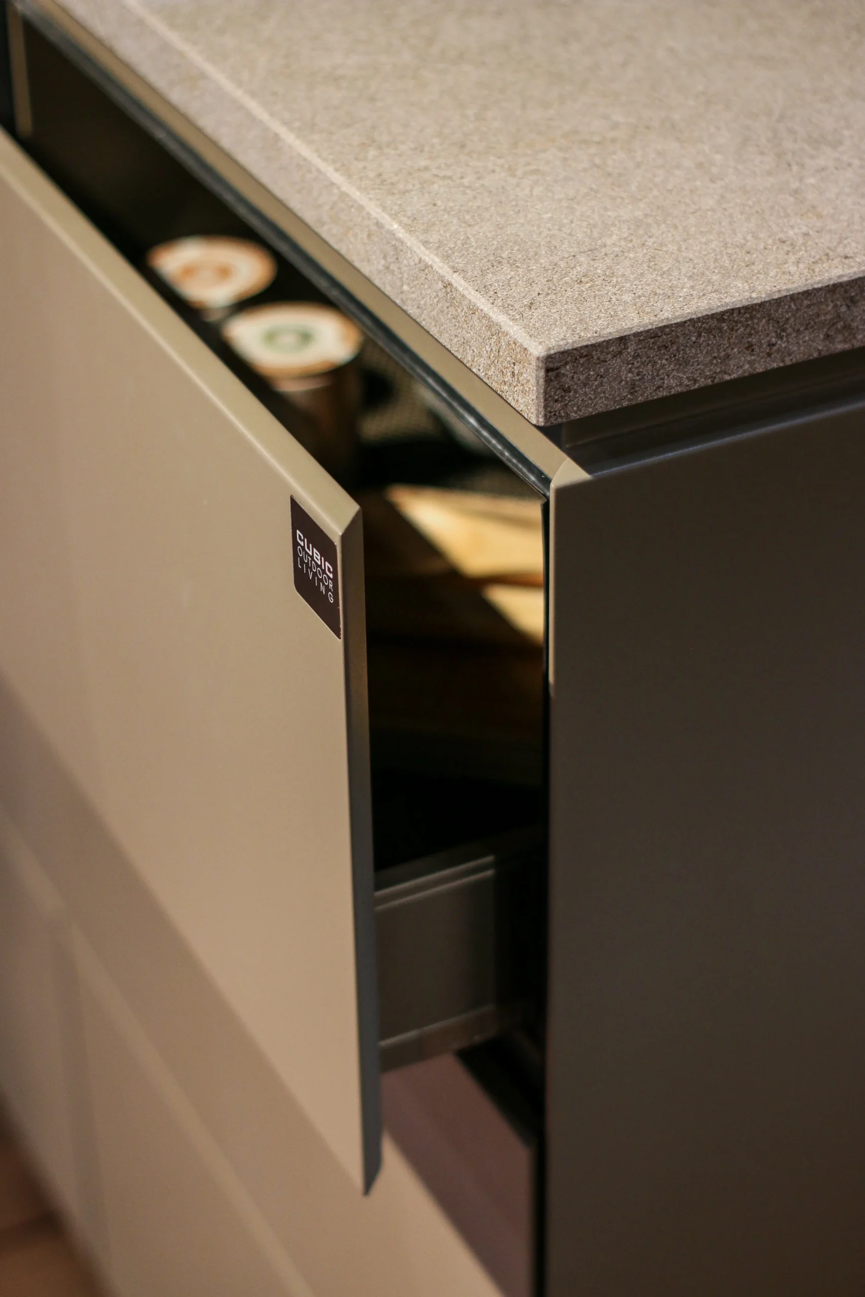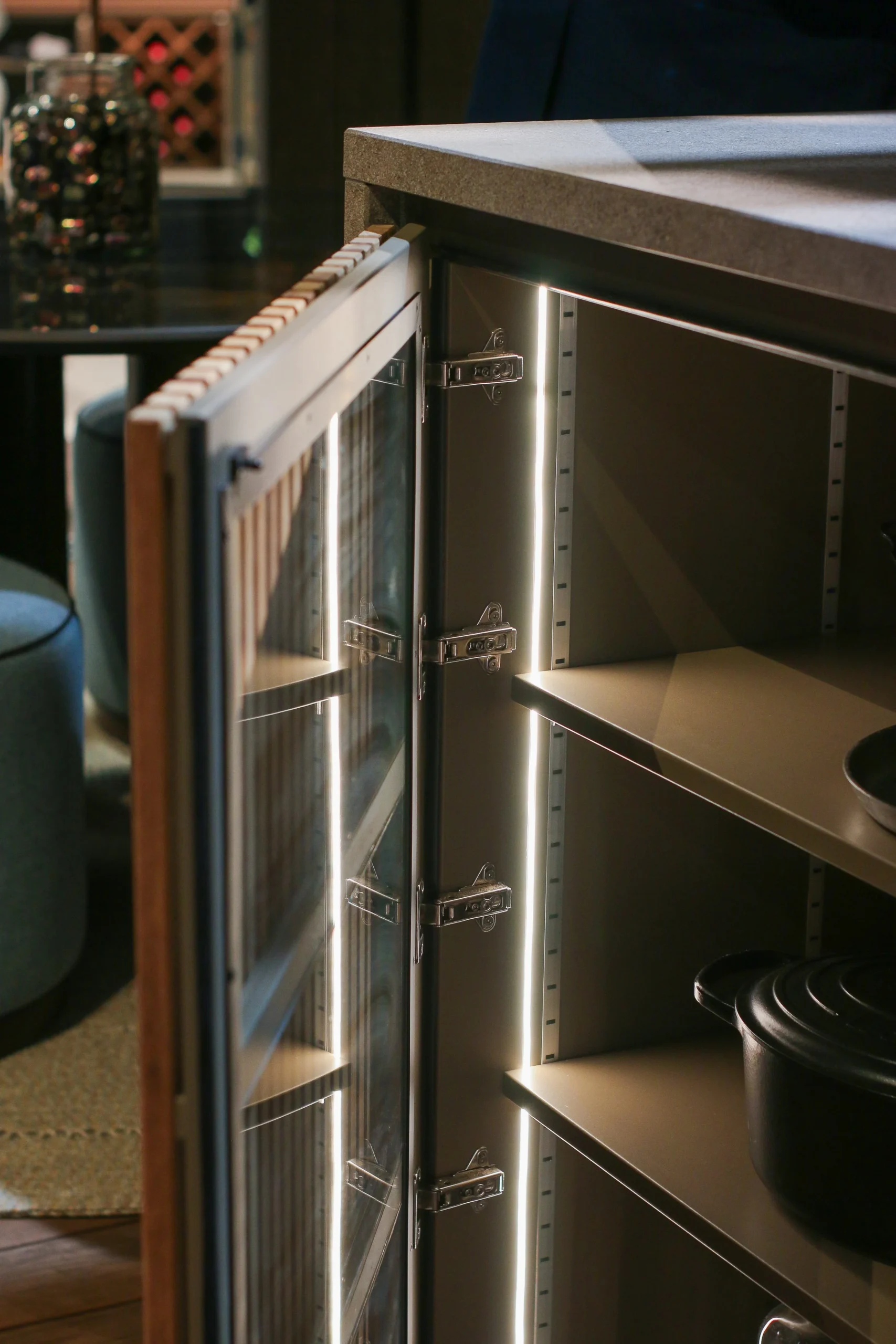 In addition to entirely bespoke sizes and configurations you can mix and match material finishes to door and drawer fronts between the C1-C2-C3-C4 ranges. Wood slats in Larch, Sipo, Iroko or Lignum-T. Ceramic finishes to match the worktop. A huge range of grills and appliances can be integrated to make your kitchen truly unique.